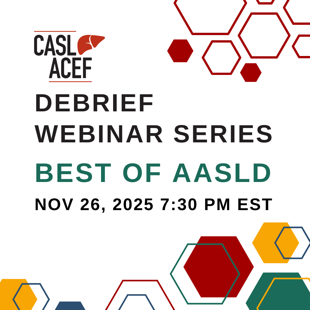 CASL Members are invited to attend CASL Debrief Webinar Series on Best of AASLD. The webinar will be held virtually on ZOOM on Wednesday, November 26 2025 at 7:30pm Eastern Time.